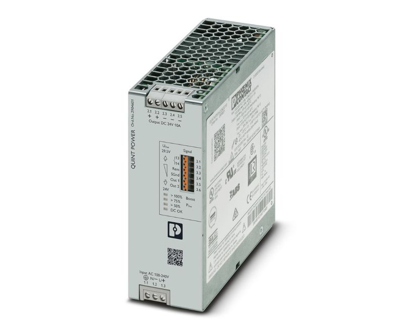 FONTE ALIMENTACAO | TIPO: CHAVEADA | NUMERO FASES: TRIFASICO | FREQUENCIA: 50/60 HZ | GRAU PROTECAO: IP-20 | TENSAO ENTRADA: 400-500 VCA | TENSAO SAIDA: 24 VCC | POTENCIA SAIDA: 240W | CORRENTE SAIDA: 10 A | MARCA: PHOENIX CONTACT| REF: QUINT4PS3AC24DC10