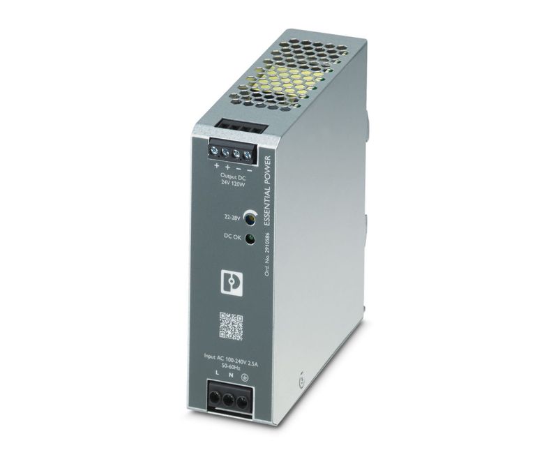 FONTE ALIMENTACAO | TIPO: CHAVEADA | NUMERO FASES: MONOFASICO | FREQUENCIA: 47-63HZ | GRAU PROTECAO: IP-20 | TENSAO ENTRADA: 100-240 VCA | TENSAO SAIDA: 24 VCC | POTENCIA SAIDA: 120W | CORRENTE SAIDA: 5A | MARCA: PHOENIX CONTACT | REF: ESSENTIALPS1AC24DC120WEE