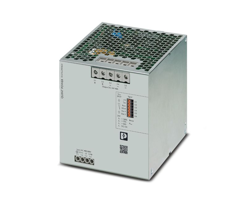 FONTE ALIMENTACAO | TIPO: CHAVEADA | NUMERO FASES: TRIFASICO | FREQUENCIA: 50-60HZ | GRAU PROTECAO: IP-20 | TENSAO ENTRADA: 400-500 VCA | TENSAO SAIDA: 24 VCC | POTENCIA SAIDA: 960W | CORRENTE SAIDA: 40A | MODELO: QUINT-PS/ 3AC/24DC/40 | MARCA: PHOENIX CONTACT| REF: QUINT4PS3AC24DC40