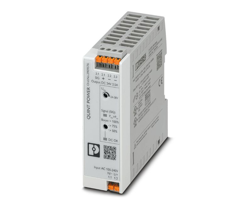 FONTE ALIMENTACAO | TIPO: CHAVEADA | FREQUENCIA: 60 HZ | GRAU PROTECAO: IP-20 | TENSAO ENTRADA: 100-240 VCA/110-250VCC | TENSAO SAIDA: 24 VCC | POTENCIA SAIDA: 60 W | CORRENTE SAIDA: 2,5 A | MODELO: QUINT POWER | MARCA: PHOENIX CONTACT| REF: QUINT4PS1AC24DC25PT