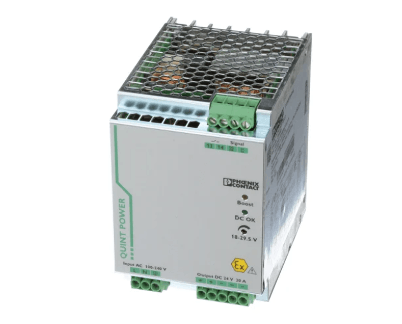 FONTE ALIMENTACAO | TIPO: CHAVEADA | NUMERO FASES: MONOFASICO | FREQUENCIA: 45 A 65 HZ | GRAU PROTECAO: IP-20 | TENSAO ENTRADA: 100-240 VCA | TENSAO SAIDA: 24VCC | CORRENTE SAIDA: 20A | MODELO: QUINT POWER | MARCA: PHOENIX CONTACT| REF: QUINTPS1AC24DC20CO