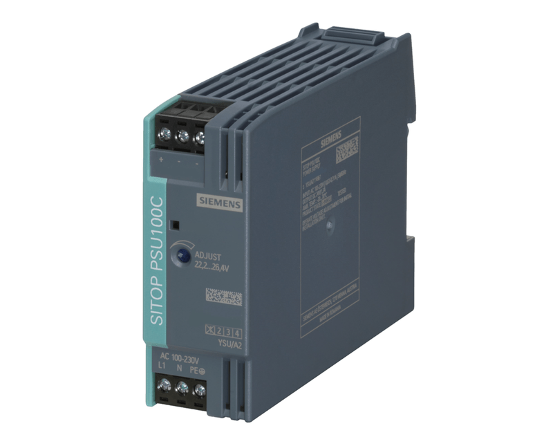 SITOP PSU100C 12V / 2A. FONTE DE ALIMENTAÇÃO ESTABILIZADA COM ENTRADA DE 100-230V AC (110-300V DC) E SAÍDA DE 12V DC / 2A. AS SITOP COMPACT MONOFÁSICAS SÃO ALIMENTAÇÕES DE CORRENTE ESTREITAS E ECONOMIZADORAS DE ESPAÇO PARA A FAIXA DE DESEMPENHO INFERIOR. ELAS SÃO USADAS NA ÁREA DAS APLICAÇÕES DESCENTRALIZADAS EM CAIXAS DE COMANDO OU ARMÁRIOS DE DISTRIBUIÇÃO PEQUENOS, DISTINGUINDO-SE PELA POTÊNCIA DE PERDA REDUZIDA EM TODA A FAIXA DE CARGA. AS PERDAS SÃO EXTREMAMENTE REDUZIDAS MESMO NO FUNCIONAMENTO EM VAZIO, PELO QUE ELAS TAMBÉM SE ADEQUAM PERFEITAMENTE À ALIMENTAÇÃO EFICIENTE DE MÁQUINAS E INSTALAÇÕES QUE SE ENCONTRAM FREQUENTEMENTE EM MODO DE STANDBY. AS PARTES DA REDE COMBINATÓRIA POSSUEM UMA ENTRADA DE GRANDE AMPLITUDE PARA REDES DE CORRENTE ALTERNADA E CORRENTE CONTÍNUA, SENDO QUE OS TERMINAIS DE ENCAIXE SUPORTAM UMA CONEXÃO ELÉTRICA SIMPLES. A FAIXA AMPLA DE TEMPERATURAS E AS CERTIFICAÇÕES ABRANGENTES OFERECEM POSSIBILIDADES DE APLICAÇÃO UNIVERSAIS. NÃO IMPORTA O SETOR OU O REQUISITO – A SIEMENS DISPONIBILIZA ALIMENTAÇÕES DE CORRENTE CONFIÁVEIS E EFICIENTES PARA CADA INSTALAÇÃO.