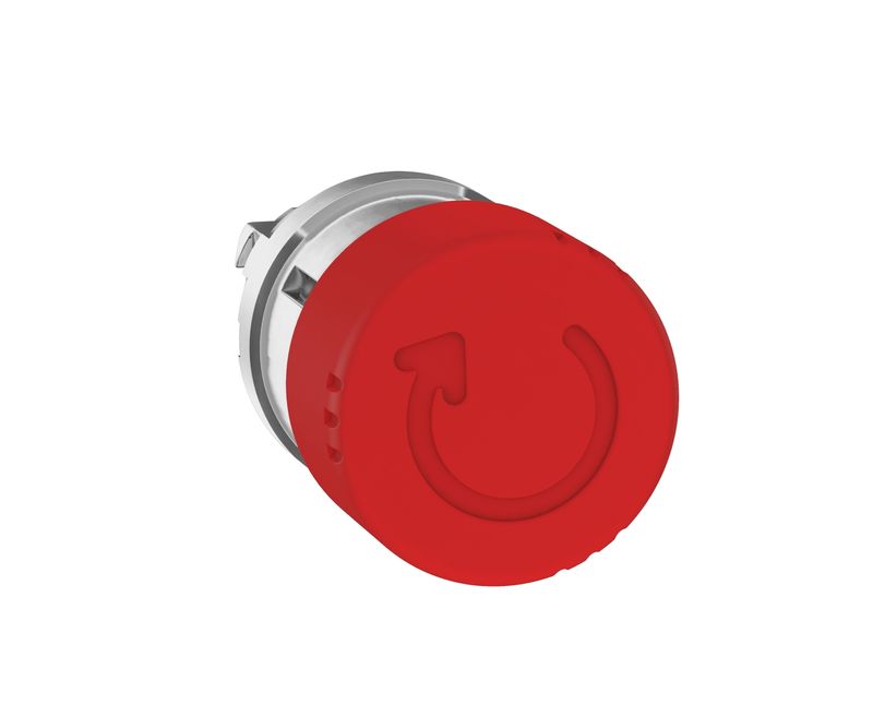 FRONTAL BOTAO COMANDO | FORMATO: COGUMELO 30 MM | FRONTAL: METALICO | COR: VERMELHO | FURACAO: 22 MM | ACIONAMENTO: GIRAR P/ DESTRAVAR| REF: ZB4BS834