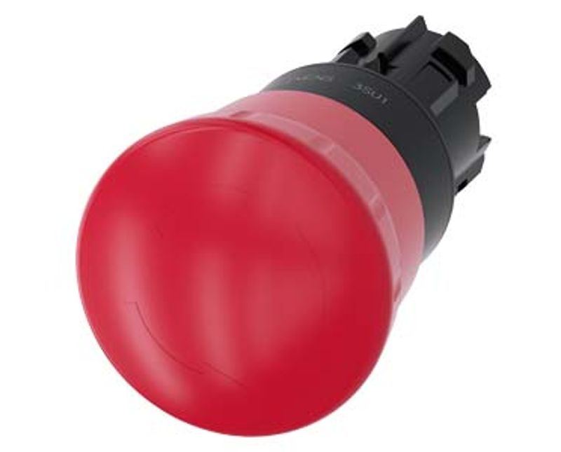 FRONTAL BOTAO COMANDO | FORMATO: COGUMELO 40 MM | FRONTAL: PLASTICO | COR: VERMELHO | FURACAO: 22 MM| REF: 3SU10001HB200AA0