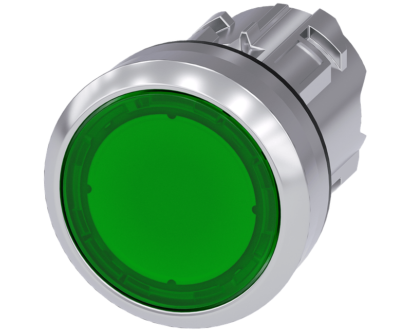 BOTÃO ILUMINADO, 22 MM, REDONDO, METAL, DE ALTO BRILHO, VERDE, BOTÃO DE PRESSÃO, PLANO, TECLA COM RETORNO BOTÃO DE PRESSÃO ILUMINADO SIRIUS ACT PARA A COMUTAÇÃO E O COMANDO DE CONSUMIDORES ELÉTRICOS. SOB O NOME DE MARCA SIRIUS ACT, A SIEMENS DISPONIBILIZA UM PORTFÓLIO ÍMPAR DE APARELHOS DE COMANDO E UNIDADES DE SINALIZAÇÃO COM APROVAÇÕES DE PRODUTO MUNDIAIS EM TRÊS SÉRIES DE DESIGN MODERNAS EM METAL AUTÊNTICO E ROBUSTO E PLÁSTICO DE ALTA QUALIDADE. O INOVADOR CONCEITO DE ENCAIXE SIMPLIFICA A MONTAGEM AO PONTO DE SER NECESSÁRIA APENAS UMA MÃO E NENHUMA FERRAMENTA ESPECIAL. COMO ORIFÍCIOS DE MONTAGEM BASTA USAR FUROS SEM RANHURA, POIS JÁ SE ENCONTRA INTEGRADA UMA PROTEÇÃO TOTAL CONTRA TORÇÃO. GRAÇAS AO TIPO DE PROTEÇÃO CONTINUAMENTE ELEVADO, OS APARELHOS ROBUSTOS SÃO ADEQUADOS PARA A INDÚSTRIA E A UTILIZAÇÃO NO EXTERIOR. É MESMO POSSÍVEL A LIMPEZA COM JATO DE ALTA PRESSÃO. NEM PÓ, NEM ÓLEOS OU LIXÍVIAS AGRESSIVAS PODEM PERTURBAR A OPERAÇÃO FIÁVEL. ALÉM DA FIAÇÃO PADRÃO, OS APARELHOS TAMBÉM PODEM SER LIGADOS AO COMANDO VIA PROFINET, AS-INTERFACE OU IO-LINK. ISSO PERMITE REDUZIR O TRABALHO DE CABLAGEM, MINIMIZAR AS FONTES DE PERIGO E GANHAR MAIOR FLEXIBILIDADE. O CONFIGURADOR ONLINE GRÁFICO AJUDA CONFORTAVELMENTE NA SELEÇÃO E NO PEDIDO DE APARELHAGENS INDIVIDUAIS, CAIXAS E INSCRIÇÕES. ESTÁ DISPONÍVEL UMA DOCUMENTAÇÃO ABRANGENTE (P. EX. MANUAL, DADOS 3D, DIAGRAMA DE CONEXÃO). VERSÕES DISPONÍVEIS: VÁRIAS CORES, COM/SEM ILUMINAÇÃO, COM/SEM INSCRIÇÃO, ACIONAMENTO POR ENCAIXE/CONTACTO, DIFERENTES ALTURAS DE BOTÃO DE PRESSÃO E ARO FRONTAL. NOTA: APARELHO INDIVIDUAL, ENCOMENDAR À PARTE SUPORTE E MÓDULOS. SIRIUS ACT - PERFORMANCE IN ACTION AO EFETUAR UM COMANDO E NOTIFICAR. SIMPLES DE MONTAR, SIMPLESMENTE RESISTENTE, SIMPLESMENTE PERFEITO.