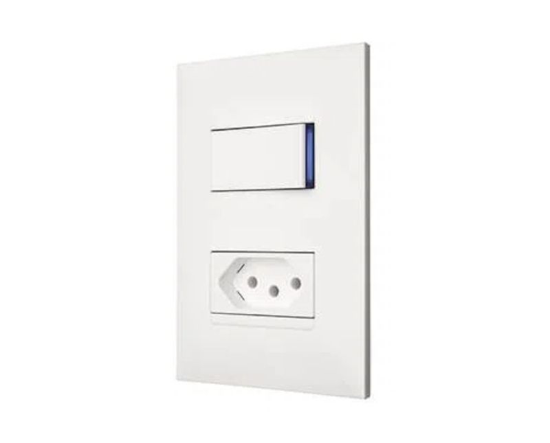 A tomada de 2 polos + terra tem contatos que seguem o padrão brasileiro para uma maior praticidade e segurança em sua utilização. Com corrente de 10A e tensão máxima de 250V, ela é capaz de atender as suas necessidades sem nenhum problema.