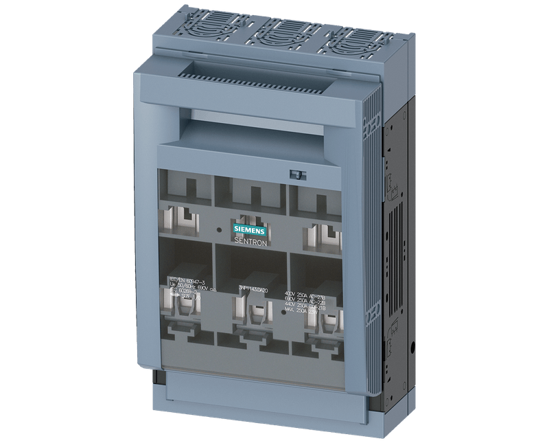 SENTRON, SECCIONADORA-FUSÍVEL SOB CARGA 3NP1, DE 3 POLOS, NH1, 250 A, PARA ESTRUTURA E INSTALAÇÃO EM PLACA DE MONTAGEM, TERMINAL DE CAIXA, NÍVEL DA COBERTURA 70MM INTERRUPTOR SECCIONADOR DE FUSÍVEIS 3NP ATÉ 630 A COM PROTEÇÃO PARA PESSOAS E INSTALAÇÕES MELHORADA E TÉCNICA DE LIGAÇÃO PRÁTICA. OS INTERRUPTORES-SECCIONADORES DE FUSÍVEIS PROTEGEM INSTALAÇÕES NA ÁREA INDUSTRIAL OU DE INFRAESTRUTURAS DE SOBRECARGAS E CURTO-CIRCUITOS E SÃO INDICADOS PARA A APLICAÇÃO ABRANGENTE EM TERMOS DE SETORES. O ISOLAMENTO DE PROTEÇÃO E ANTICONTACTO, FORNECIDO DE PADRÃO COM A NOVA SÉRIE SENTRON 3NP1, PROTEGE O UTILIZADOR DO CONTACTO COM PEÇAS CONDUTORAS DE CORRENTE DURANTE A MONTAGEM DE SISTEMAS DE BARRAMENTO, MESMO EM CASO DE ACESSO PELA PARTE TRASEIRA. ADICIONALMENTE O UTILIZADOR CONSEGUE RECONHECER FACILMENTE OS FUSÍVEIS USADOS ATRAVÉS DA JANELA DE INSPEÇÃO. OS INTERRUPTORES-SECCIONADORES DE FUSÍVEIS 3NP SIEMENS DISTINGUEM-SE SOBRETUDO POR: 1. ALTAMENTE FLEXÍVEL DEVIDO A ESTRUTURA MODULAR E ACESSÓRIOS CORRENTES. 2. ADEQUADO PARA FIXAÇÃO PELA BASE, CALHA DIN E SISTEMA DE BARRAMENTO SIEMENS 8US 3. FUNÇÃO DE MONITORIZAÇÃO DE SEGURANÇA DE FUSÍVEIS ELETRÓNICA INCL. MONITORIZAÇÃO DA REDE. 4. CINCO TAMANHOS DE 100 A ATÉ 630 A ATÉ AO TIPO DE PROTEÇÃO IP40. 5. CONVERSÃO RÁPIDA E SEGURA PARA DERIVAÇÃO DE CABO EM CIMA / EM BAIXO. 6. POSSIBILIDADE DE TEMPO DER RESPOSTA FLEXÍVEL DO INTERRUPTOR AUXILIAR (SIMULTÂNEO OU COM AVANÇO). 7. POSSIBILIDADE DE VEDAR E SELAR.