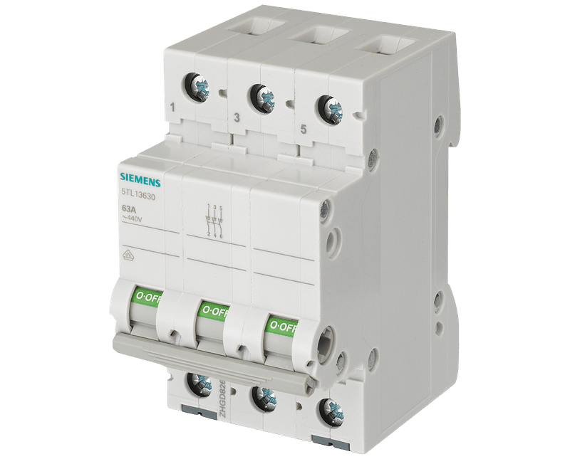 INTERRUPTOR SECCIONADOR | NUMERO POLOS: TRIPOLAR | CORRENTE: 63A | TENSAO: 440V | CAPACIDADE RUPTURA: 10KA | NUMERO CONTATOS: 3NA | MARCA: SIEMENS | REFERENCIA: 5TL13630