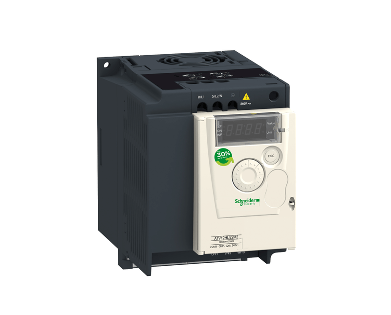 Esta variador de velocidade / Inversor frequência (VSD / VFD) é projetada para máquinas e equipamentos industriais e comerciais simples, como transportadores, bombas, extratores, barreiras de acesso e esteiras. Seu formato compacto permite a montagem dentro de quadros de aparelhos não industriais simples. Pode ser configurado antes de sua instalação, enquanto ainda está na embalagem, mesmo sem usar uma fonte de alimentação, minimizando o tempo de instalação. A versatilidade do software SoMove permite salvar e transferir configurações para uma unidade sobressalente, reduzindo o tempo de máquina parada durante a manutenção.. Funções otimizada de potência e torque para aplicações de ventilação e bombeamento: até 30% de economia de energia