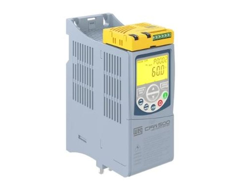 INVERSOR FREQUENCIA | NUMERO FASES: TRIFASICO | TENSAO ALIMENTACAO: 220V | TIPO CORRENTE ELETRICA (ALIMENTACAO): CORRENTEALTERNADA (CA) | FREQUENCIA: 50/60HZ | CORRENTE NOMINAL SAIDA LOW OVERLOAD / NORMAL DUTY (LO): 7A | POTENCIA LOW OVERLOAD / NORMAL DUTY (LO): 1,5KW (2CV) | CLASSE PROTECAO : IP20 | FILTRO ELETROMAGNETICO: SEM FILTRO RFI | MODELO: CFW500 | MARCA: WEG | REFERENCIA: CFW500A07P0T2NB20Y2