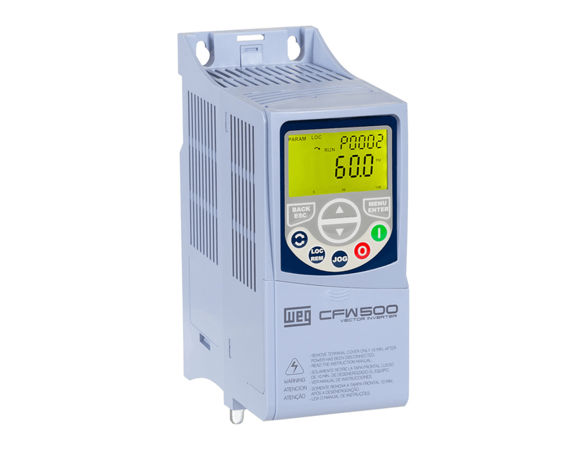 INVERSOR FREQUENCIA | NUMERO FASES: TRIFASICO | TAMANHO (CARCACA): FSB | TENSAO ALIMENTACAO: 380-480V | TIPO CORRENTE ELETRICA (ALIMENTACAO): CORRENTE ALTERNADA (CA) | FREQUENCIA: 47-63HZ | CORRENTE NOMINAL SAIDA HIGH OVERLOAD / HEAVY DUTY (HO): 6,5A | CORRENTE NOMINAL SAIDA LOW OVERLOAD / NORMAL DUTY (LO): 6,5A | POTENCIA HIGH OVERLOAD / HEAVY DUTY (HO): 2,2KW (3CV) | POTENCIA LOW OVERLOAD / NORMAL DUTY (LO): 2,2KW (3CV) | CLASSIFICACAO / GRAU PROTECAO: IP-20 | PROTOCOLO: MODBUS / PROFIBUS / PROFINET / CANOPEN / DEVICENET / ETHERNET / IP / ETHERCAT / BACNET | ALTURA: 199MM | LARGURA: 100MM | PROFUNDIDADE: 160MM | FILTRO ELETROMAGNETICO: SEM FILTRO | MODELO: CFW | MARCA: WEG | REF: CFW500B06P5T4DB20G2