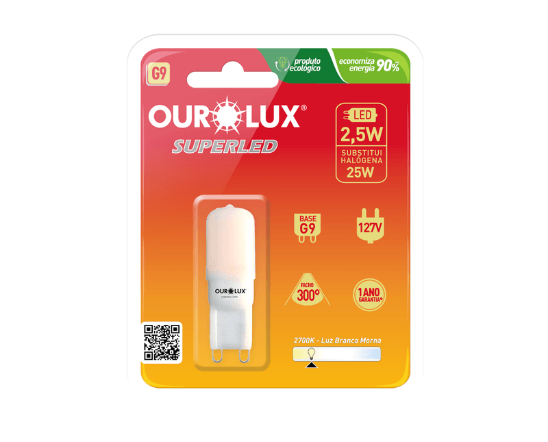 A lâmpada LED Halopin G9 da Ourolux é a escolha perfeita para quem busca eficiência e economia. Com uma potência de apenas 2,5W, ela oferece uma luminosidade de 180 lumens, ideal para iluminar ambientes com conforto e clareza. Seu tom de 2700K proporciona uma luz quente, criando uma atmosfera aconchegante e agradável em qualquer espaço.