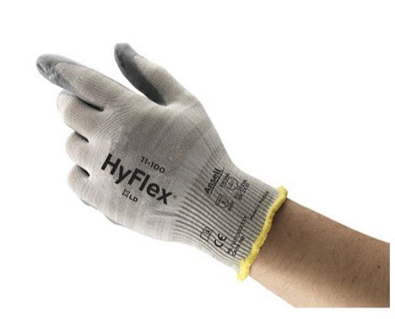 LUVA | TIPO: ANTISTATICA | MATERIAL: POLIESTER | COR: CINZA | PALMA: NITRILICA | PUNHO: C/ELASTANO | TAMANHO: 7 | MARCA: ANSELL | REF: HYFLEX 11100