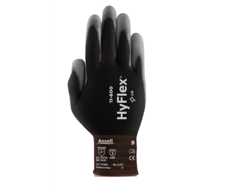 Equipamento de proteção individualProteção das mãosLuva Multitato Tricotada Fio Sintético Preta Poliuretano Hyflex 11600 Tamanho 7 CA 17601 Ansell