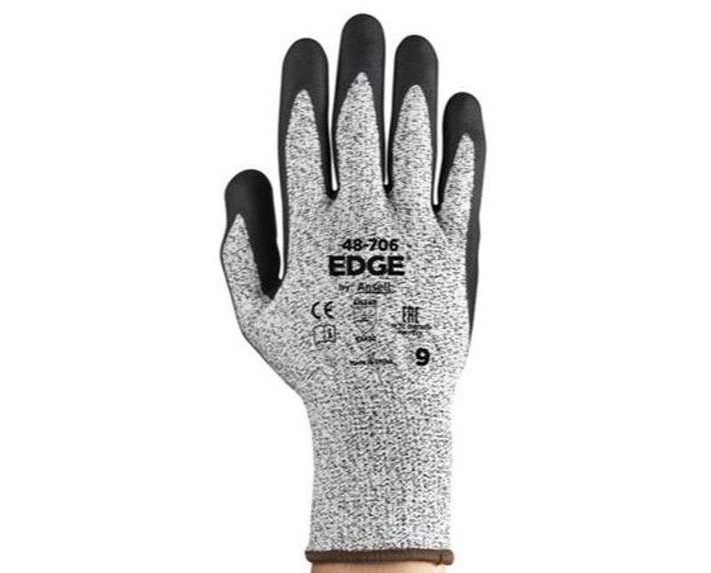 LUVA | TIPO: USO GERAL | MATERIAL: NYLON/FIBRA VIDRO | COR: CINZA/PRETA | PALMA: NITRILICA | TAMANHO: 11/XXG | MODELO: EDGE | MARCA: ANSELL| REF: 48706
