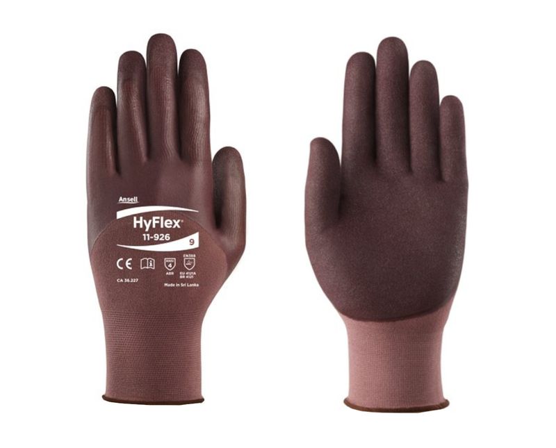 Máximo desempenho em ambientes oleosos Principais características e benefícios A 11-926 é o primeiro modelo da família HyFlex® a combinar de maneira confortável um banho ¾ com repelência e aderência ao óleo tudo em uma única luva. A HyFlex® 11-926 possui uma tecnologia única de aderência que reduz o risco de deslizamento em ambientes oleosos O forro é produzido com fio de nylon/elastano para oferecer ao usuário uma sensação de “segunda pele” sem limitação de movimentos Esta combinação única de proteção, desempenho e flexibilidade atende as necessidades do mercado quando falamos de aplicações gerais onde o óleo se faz presente. A HyFlex® 11-926 é inovadora pela flexibilidade aprimorada, tato e aderência, além de melhorar a repelência ao óleo e vida útil das luvas.