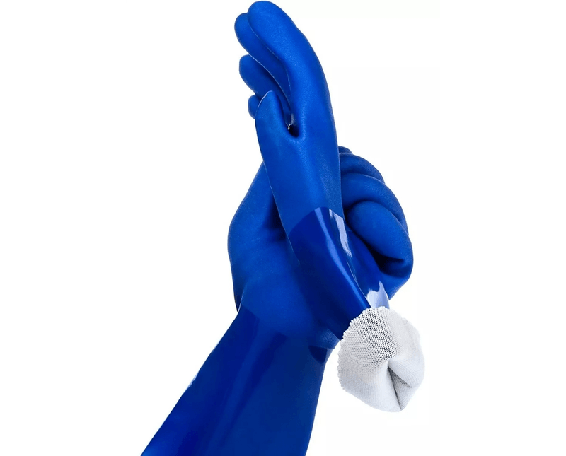 A Luva PVC AZ 350MM T G PETROBLUE DA12214DAZ é ideal para uso em situações em que se requer proteção contra agentes abrasivos, cortantes ou perfurantes, além de oferecer um excelente grip em superfícies revoltas. Com palma áspera e punho picotado, essa Luva garante ainda mais firmeza e segurança, evitando escorregões e deslizes durante o manuseio dos objetos.