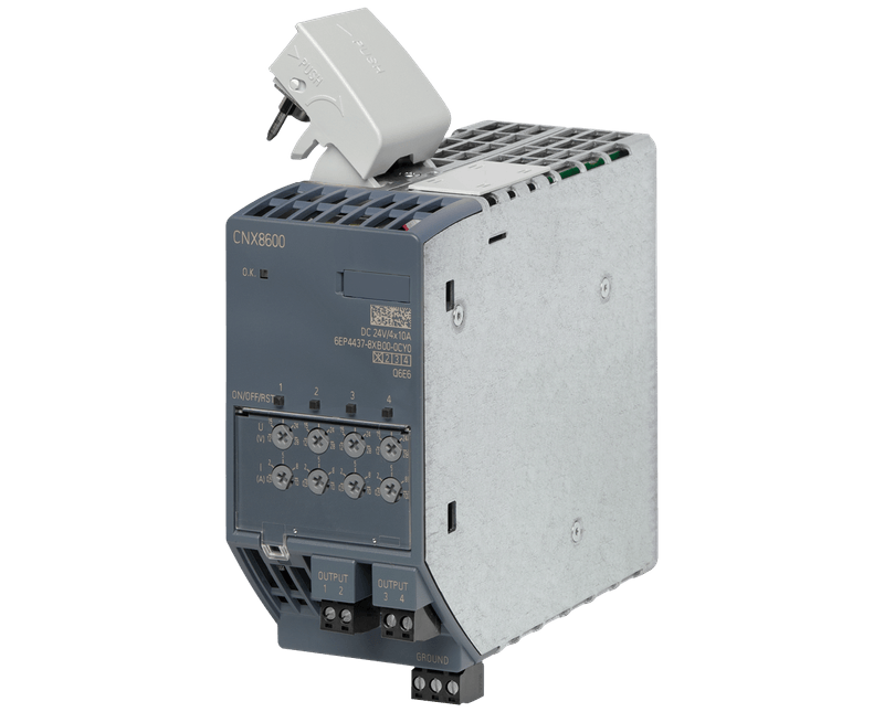 SITOP CNX8600 4X10A OS MÓDULOS DE EXPANSÃO SITOP CNX8600 FAZEM PARTE DO SISTEMA DE COMPONENTES MODULARES DO SITOP PSU8600 E EXPANDEM O DISPOSITIVO-BASE, AUMENTANDO O NÚMERO DE SAÍDAS MONITORADAS SELETIVAMENTE. A UM DISPOSITIVO-BASE PSU8600 PODEM SER LIGADOS ATÉ QUATRO MÓDULOS DE EXPANSÃO CNX8600 NA COMBINAÇÃO QUE DESEJAR. A LIGAÇÃO É EFETUADA DO LADO SUPERIOR DOS MÓDULOS SEM QUALQUER TRABALHO DE CABLAGEM, UTILIZANDO O SISTEMA CLIP LINK E UM CONECTOR PARA DADOS DO SISTEMA E A ALIMENTAÇÃO DE ENERGIA ELÉTRICA. O SISTEMA DE ALIMENTAÇÃO DE CORRENTE PSU8600 COM INTEGRAÇÃO TIA COMPLETA DEFINE PADRÕES NOVOS EM TERMOS DE EFICIÊNCIA E CONFIABILIDADE DA INSTALAÇÃO.