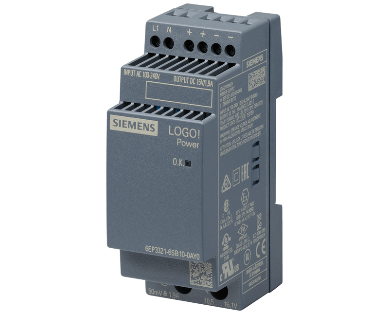 LOGO. POWER 15V / 1,9A OS MINICOMPONENTES DE REDE LOGO. POWER COM DESIGN DOS MÓDULOS LOGO. 8 OFERECEM MUITA POTÊNCIA EM UM ESPAÇO MÍNIMO. O ALTO GRAU DE EFICIÊNCIA EM TODA A FAIXA DE CARGA E A BAIXA POTÊNCIA DE PERDA NO FUNCIONAMENTO EM VAZIO GARANTEM UM FUNCIONAMENTO EFICIENTE. A ENTRADA DE GRANDE AMPLITUDE PARA REDES MONOFÁSICAS E REDES DE TENSÃO CONTÍNUA, BEM COMO A RESERVA DE POTÊNCIA NA LIGAÇÃO DE CARGAS CAPACITIVAS PREENCHEM OS REQUISITOS DE NUMEROSAS APLICAÇÕES. TAMBÉM A FAIXA AMPLA DE TEMPERATURAS E AS CERTIFICAÇÕES ABRANGENTES POSSIBILITAM UMA APLICAÇÃO UNIVERSAL. AS ALIMENTAÇÕES DE CORRENTE CONFIÁVEIS COM SUA CAIXA PLANA ESCALONADA PODEM SER INTEGRADAS COM A MÁXIMA FLEXIBILIDADE - POR EXEMPLO EM QUADROS DE DISTRIBUIÇÃO. NÃO IMPORTA O SETOR OU O REQUISITO – A SIEMENS DISPONIBILIZA ALIMENTAÇÕES DE CORRENTE CONFIÁVEIS E EFICIENTES PARA CADA INSTALAÇÃO.