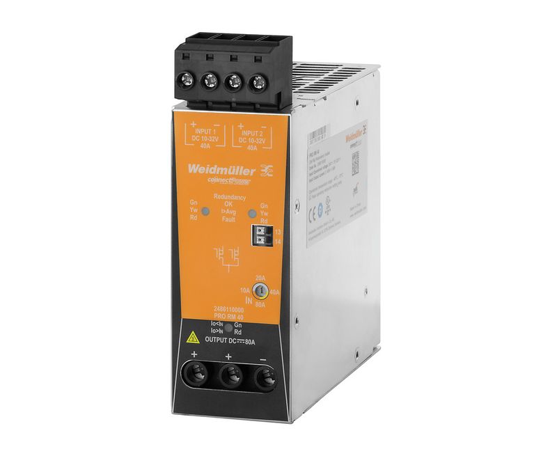 Com design compacto e fácil instalação, o Módulo Redundância Weidmuller Pro RM 40 é ideal para aplicações em diferentes segmentos da indústria, oferecendo suporte ao sistema de alimentação principal e alternativo em caso de necessidade de troca ou falha dos equipamentos. Com tensão de entrada de 24VCC, o módulo acompanha o modelo Pro RM 40 e é compatível com diversos projetos de automação.