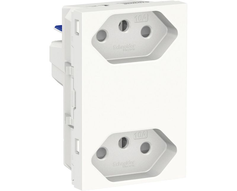 Atende todas as demandas, até mesmo de escritórios, hotéis, hospitais ou qualquer outro prédio público, Módulo tomada duplex 2P+T 10A 250V borne automático 3 módulos branco, Orion , - Schneider facilitando seu dia-a-dia.