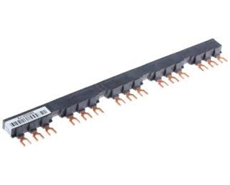 Jogo de barras tripolares GV2G554, corrente 63A, da linha Linergy FT da Schneider Electric. Com passo de conexão de 54 mm e 5 derivações. É um acessório que pode ser utilizado para fornecer energia para um grupo de cinco disjuntores-motores.. Garante produtividade e eficiência otimizadas. do seu painel de controle, facilidade de instalação e alta confiabilidade.