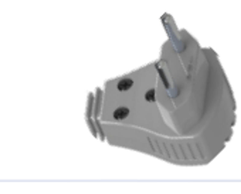 Seu corpo em formato triangular é ideal para ser conectado em tomadas com o mesmo formato e para ser usado em lugares com pouco espaço, garantindo uma instalação fácil e rápida. O plugue é de cor cinza, com conexão para 2 pinos e suporta tensão máxima de 250V e corrente máxima de 10A.