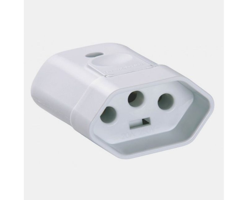 Material elétricoPlugues e tomadas residenciaisPlugue Fêmea Energia Predial Femea Branco 2 Polos + Terra 250 V 20 A 57402155 TRAMONTINA