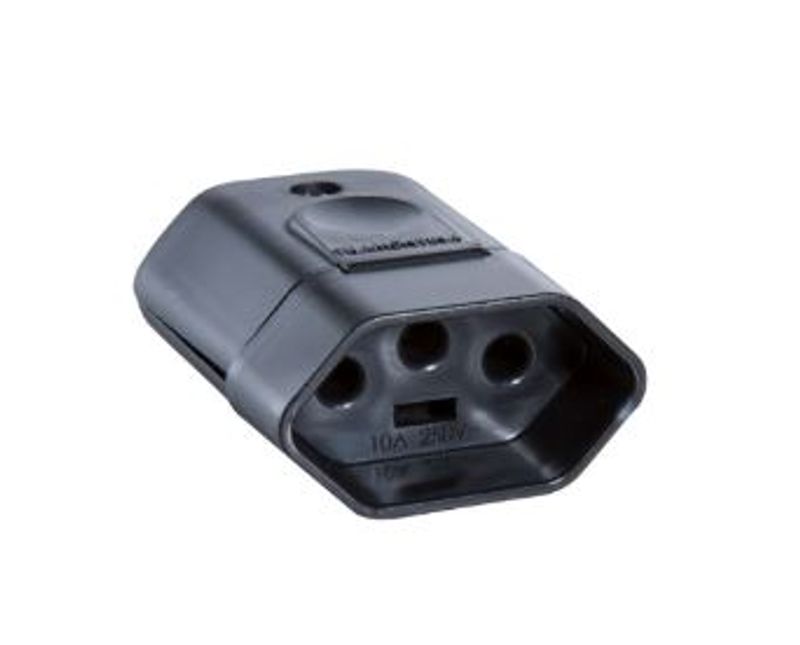 Plugue Fêmea Energia Predial Femea Preto 2 Polos + Terra 250 V 10 A 57403053 TRAMONTINA