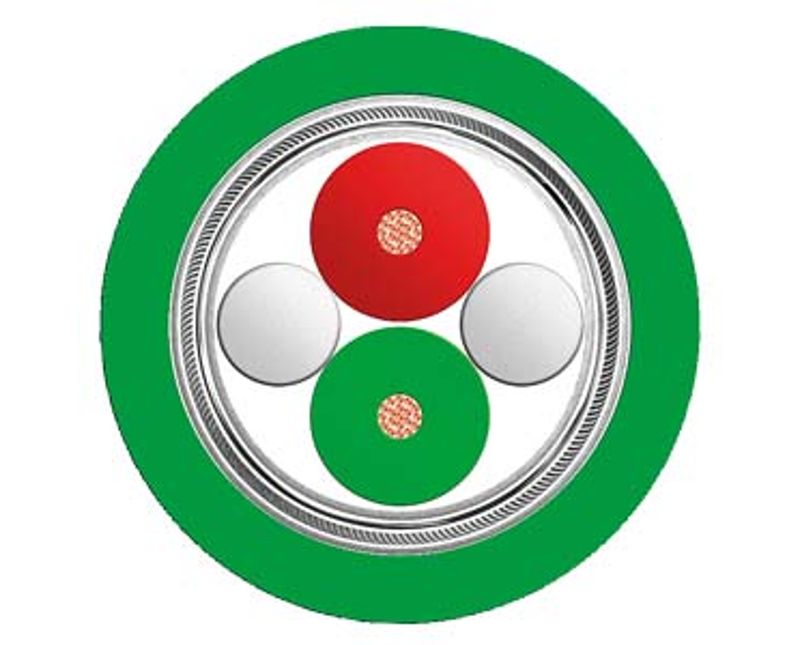 Filme laminado de alumínio sobreposto, envolto por um entrançamento blindado de fios de cobre estanhados