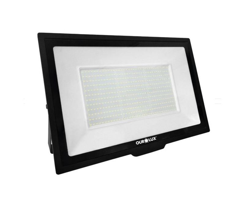 PROJETOR (REFLETOR) | LAMPADA: LED (MODULO FIXO) | MATERIAL CORPO: ALUMINIO | REVESTIMENTO: PINTURA | COR: PRETA | FORMATO: RETANGULAR | MATERIAL LENTE: VIDRO | ANGULO FACHO: 110 GRAUS | FORMATO LENTE: SIMETRICA | CLASSIFICACAO / GRAU PROTECAO: IP-65 | POTENCIA: 500W | TEMPERATURA COR: 6500K | TENSAO: 100-240V | FLUXO LUMINOSO: 4000 LUMENS | MODELO: SUPERLED SLIM | MARCA: OUROLUX | REF: 03278