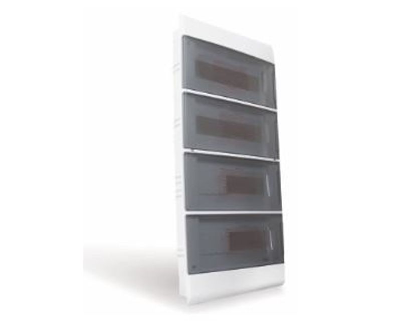 QUADRO DISTRIBUICAO DISJUNTOR | MATERIAL: TERMOPLASTICO | REVESTIMENTO: SEM REVESTIMENTO | COR: BRANCA | INSTALACAO: EMBUTIR | PADRAO: DIN | NUMERO DISJUNTORES: 48 | CLASSIFICACAO: IP-40 | DIMENSAO: 277 X 682 X 68 MM | BARRAMENTO: SEM BARRAMENTO | REQUISITOS ADICIONAIS: PORTA TRANSPARENTE | MODELO: OURO BOX | MARCA: STECK| REF: SCE48PT
