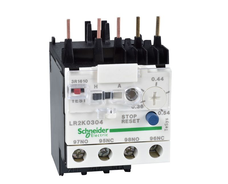 O LR2K0304 é um relé de sobrecarga térmica TeSys LRK da - Schneider para montagem direta em contatores TeSys K. Com uma faixa de ajuste térmico de 0,36A...0,54A, uma classe de disparo 10A e detecção de desequilíbrio de fase, ele protege os motores de 0,09...0,12kW@380V. Ele fornece botões de teste e reset manual, reset automático, contato auxiliar de trip e indicador de desligamento. Disponível em todo o mundo, é certificado para vários padrões (IEC, UL, CSA, CCC, EAC, Marinha) e compatível com Green Premium (RoHs / Reach).