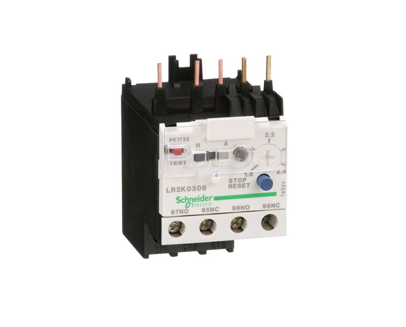 O LR2K0310 é um relé de sobrecarga térmica TeSys LRK da - Schneider para montagem direta em contatores TeSys K. Com uma faixa de ajuste térmico de 1,8A...2,6A, uma classe de disparo 10A e detecção de desequilíbrio de fase, ele protege os motores de 0,75...1,1kW@380V. Ele fornece botões de teste e reset manual, reset automático, contato auxiliar de trip e indicador de desligamento. Disponível em todo o mundo, é certificado para vários padrões (IEC, UL, CSA, CCC, EAC, Marinha) e compatível com Green Premium (RoHs / Reach).