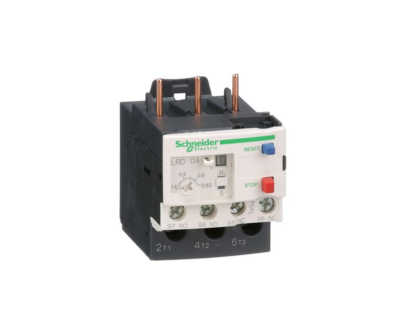 O LRD04 é um relé de sobrecarga térmica TeSys LRD da - Schneider para montagem direta em contatores TeSys D. Com uma faixa de ajuste térmico 0,4A...0,63A, uma classe de disparo de 10A e detecção de desequilíbrio de fase, ele protege os motores 0,09...0,12kW@380V. Ele fornece botões de teste & reset manual, reset automático, contato auxiliar de trip e sinalização de desligamento. Disponível em todo o mundo, é certificado para vários padrões (IEC, UL, CSA, CCC, EAC, Marinha) e compatível com Green Premium (RoHs / Reach).