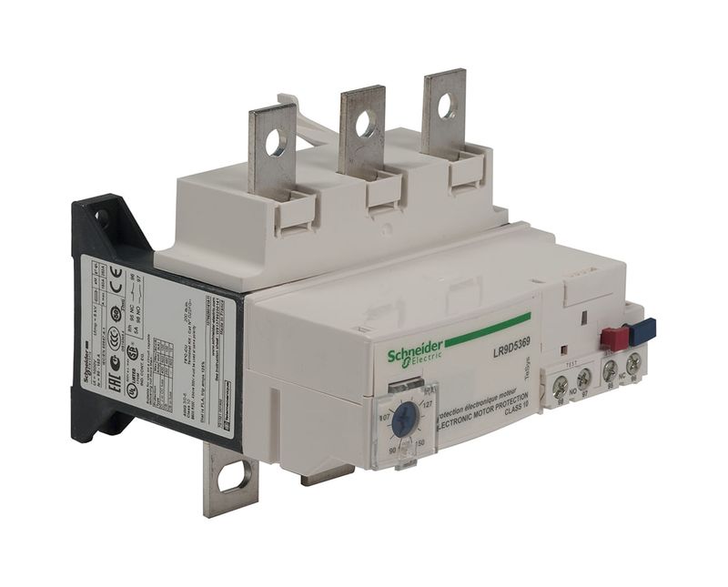 O LR9D5369 é um relé de sobrecarga térmica TeSys LR9D da - Schneider para montagem direta em contatores TeSys D. Com uma faixa de ajuste térmico 90A...150A, uma classe de disparo de 10-10A e detecção de desequilíbrio de fase, ele protege os motores elétricos até 55...75kW@380V. Ele fornece botões de teste & reset manual, reset automático, contato auxiliar de trip e sinalização de desligamento. Disponível em todo o mundo, é certificado para vários padrões (IEC, UL, CSA, CCC, EAC, Marinha) e compatível com Green Premium (RoHs / Reach).