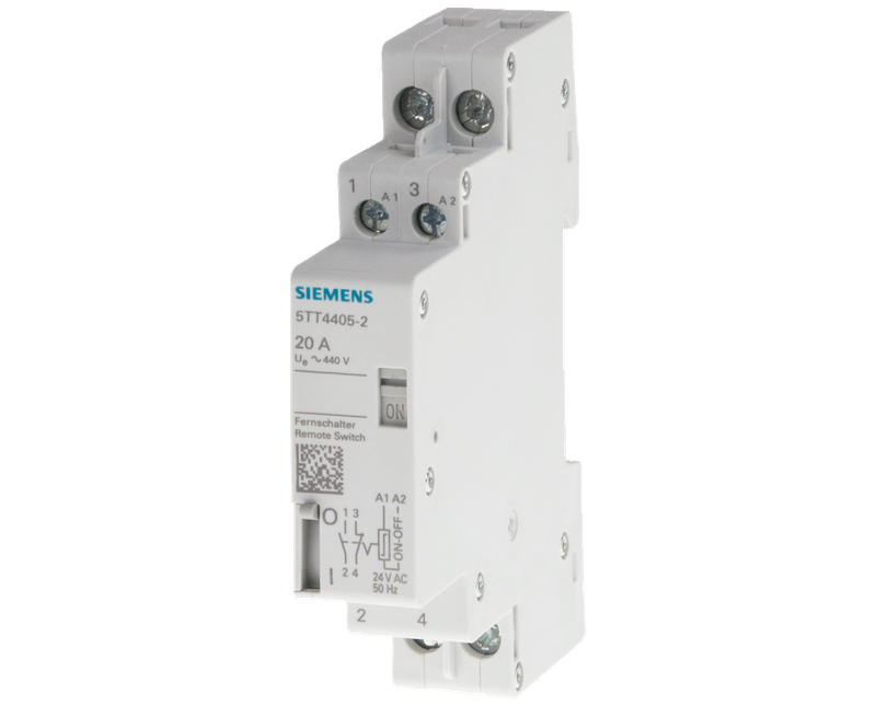 RELE IMPULSO | TIPO: COMUTADOR | NUMERO POLOS: BIPOLAR | FIXACAO TERMINAL: TRILHO DIN | CORRENTE NOMINAL: 20A | TENSAO CONTROLE: 230 VCA | CONTATOS AUXILIARES: 2NA | FREQUENCIA: 50/60HZ | MODELO: SENTRON | MARCA: SIEMENS | REFERENCIA: 5TT44020
