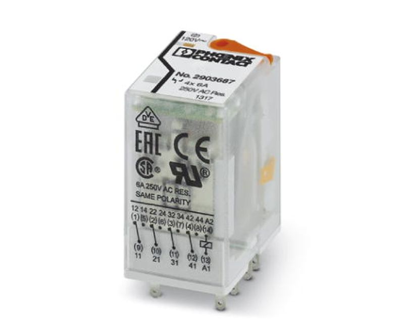 Relé Industrial 14 Polos 120V 6A 4Na RELIR4L120AC4X21 Phoenix Contact Relé Industrial 14 Polos 120V 6A 4Na RELIR4L120AC4X21 Phoenix Contact