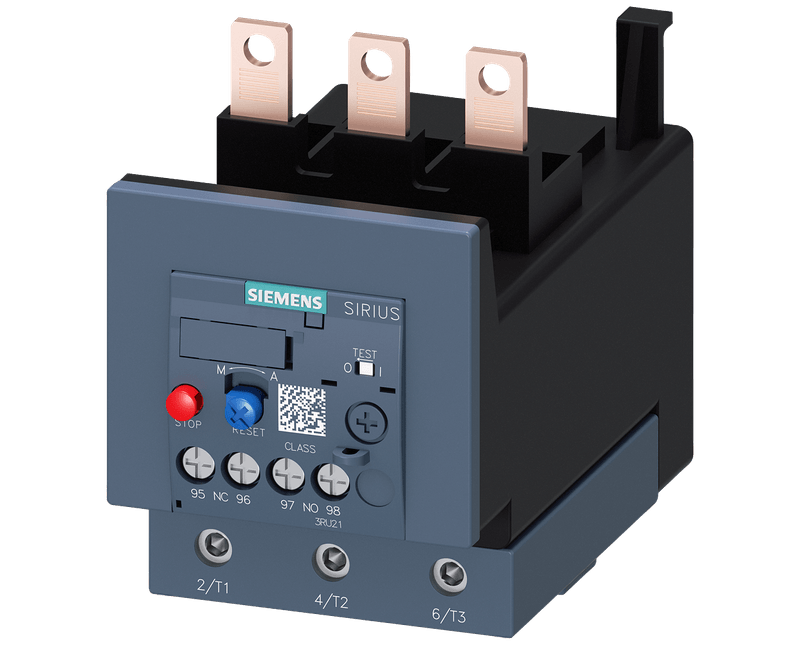 Relé de sobrecarga SIRIUS 3RU2 para proteção de cargas com partidas normais, contra aumentos excessivos de temperatura devido à sobrecarga ou falha de fase.