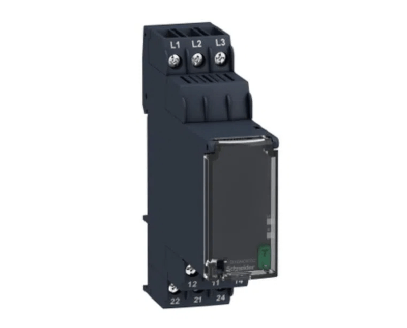 Este relé de controle assimetria Schneider Electric Zelio Controle RM22TA permite o monitoramento de circuitos de alimentação em vermelho de 3 fases. Tem 2 NANF com uma tensão de 380-480Vac alimentação. É montável em trilho DIN.. Este relé de controle 3-fases modular é ideal para a monitoração de valores elétricos e variação de corrente em painéis de comando industriais e de construção. Aplica-se a um vasto tipo de aplicações industriais, tais como automação de elevação, embalagem, elevadores, têxteis, água.
