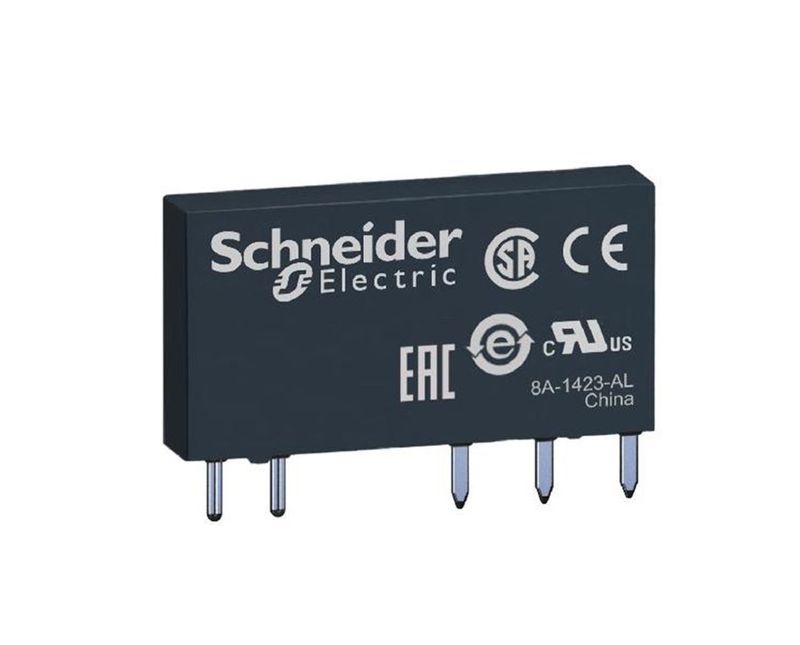 Este - Schneider RSL interface Slim plug-in tem uma tensão de controle de 12 Vcc bobina e tem um contato de comutação NANF trabalha em 6A.