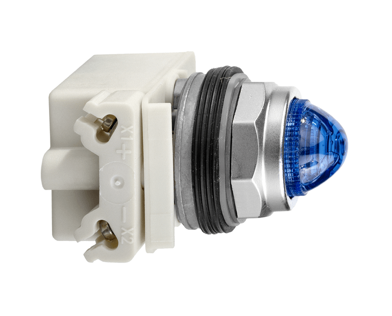 Este Harmony 9001K sinalizador azul Schneider Electric com LED integral e lente de plástico é fornecido com 24Vac / dc. Ele se encaixa em um rasgo de 30 mm e possui moldura de metal cromado. Este sinalizador fornece feedback visual claro sobre o estado das suas máquinas. É facilmente instalado em um padrão de recorte de 30 mm e ligado com grampos de parafuso simples. É claramente distinguível visualmente a uma distância devido às cores claras e iluminação via LED integral, permitindo ler o status da máquina rapidamente.É resistente a impacto e ambientes agressivos.