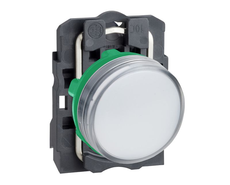 SINALEIRO COMANDO | FORMATO: REDONDO | FRONTAL: PLASTICO | COR: BRANCO | FURACAO: 22,0 MM | TENSAO ALIMENTACAO: 230 V | ILUMINACAO: LED| REF: XB5AVM1| Luz Piloto, Lente Lisa|Esta luz piloto, projetada para durar sem manutenção para uma indicação clara das operações do processo e da máquina, é facilmente instalada em recortes padrão de 22 mm de diâmetro e conectada com conexões simples de fixação por parafuso. É claramente distinguível visualmente a uma distância graças a uma iluminação LED brilhante e duradoura. É resistente a impactos, resistente a poeira, resistente à água e à vibração graças à sua IP66 / IP67 / IP69 / IP69K, tornando-a ideal para operação em ambientes agressivos.
