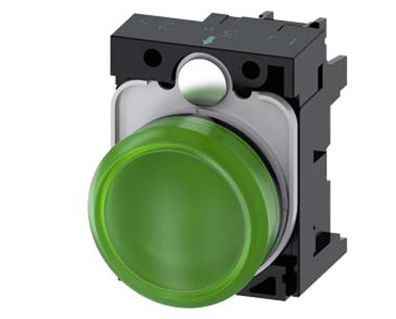 SINALEIRO COMANDO | FORMATO: REDONDO | FRONTAL: PLASTICO | COR: VERDE | FURACAO: 22 MM | TENSAO ALIMENTACAO: 230VCA | ILUMINACAO: LED | MODELO: SIRIUS ACT | MARCA: SIEMENS| REF: 3SU11066AA401AA0