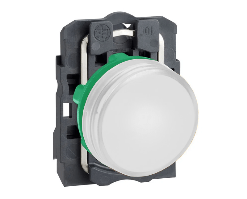O dispositivo é composto por um corpo plástico branco de 22mm, que é facilmente instalado em painéis elétricos, e por um módulo de sinalização, que pode emitir luz nas cores verde, vermelha ou amarela. Nesse modelo em particular, a alimentação do sinalizador é de 24VCA.