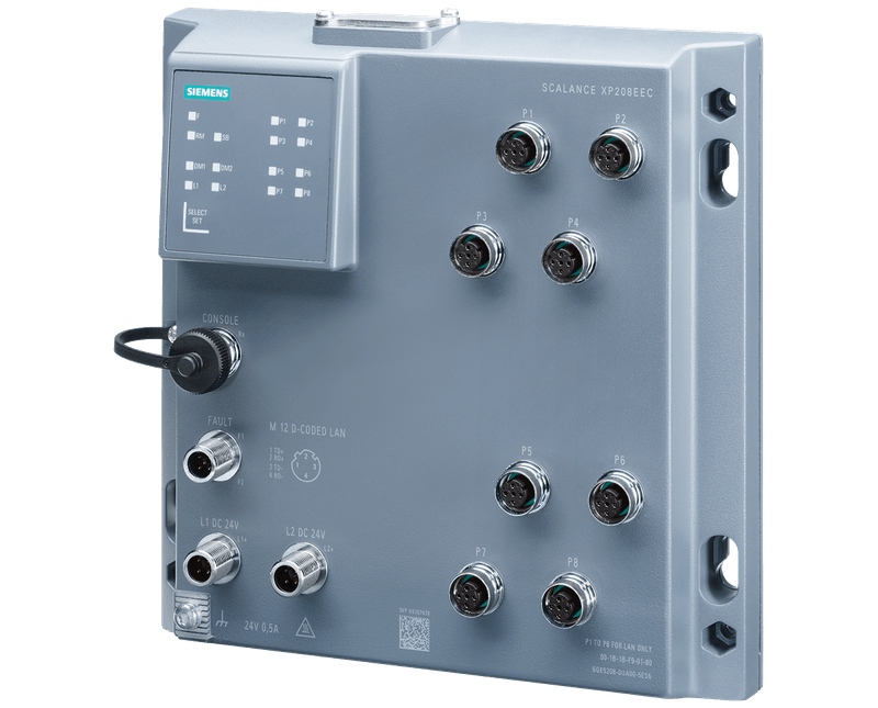 SCALANCE XP208POE EEC SCALANCE XP208POE EEC SWITCH PROTEGIDO DE CAMADA 2, CONTROLADO, 8X M12 10/100 MBIT/S, IP65/67, CONFORMAL COATING, POE PARA PROFINET E ETHERNET/IP, PADRÃO: PROFINET, FORA DO ARMÁRIO DE DISTRIBUIÇÃOPARA REALIZAÇÃO DE CONCEITOS DE AUTOMAÇÃO SEM ARMÁRIO DE DISTRIBUIÇÃO COM COMPONENTES DE REDE IE SOB CONDIÇÕES AMBIENTE DIFÍCEIS.SWITCH TO THE FUTURE - SCALANCE X.
