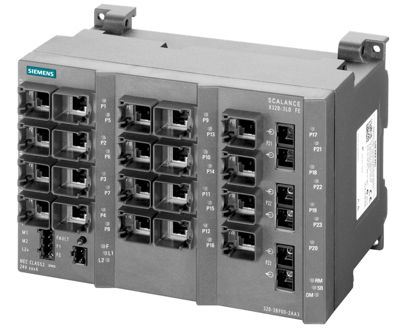 SCALANCE X320-3LDFE SWITCH COMPACTO CONTROLADO CAMADA 2 SCALANCE X320-3LD FE, 20X 10/100 MBIT/S RJ45, 1X 100 MBIT/S MULTIMODO SC, 2X 100 MBIT/S MODO INDIVIDUAL SC PARA ESTRUTURAÇÃO DE GRANDES REDES DE INSTALAÇÃOMONTAGEM EM ARMÁRIOS DE DISTRIBUIÇÃO PARA A CONSTRUÇÃO DE REDES SWITCHED COM ALTA DISPONIBILIDADE, POSSIBILIDADES ABRANGENTES DE DIAGNÓSTICO E ALTAS VELOCIDADES DE TRANSMISSÃO. PARA REDES DE INSTALAÇÕES DE ALTO DESEMPENHO COM LIGAÇÃO À REDE EMPRESARIAL, PARA FIBRA ÓPTICA DE VIDRO (MODO INDIVIDUAL) ATÉ NO MÁX. 26 KM.SWITCH TO THE FUTURE - SCALANCE X.
