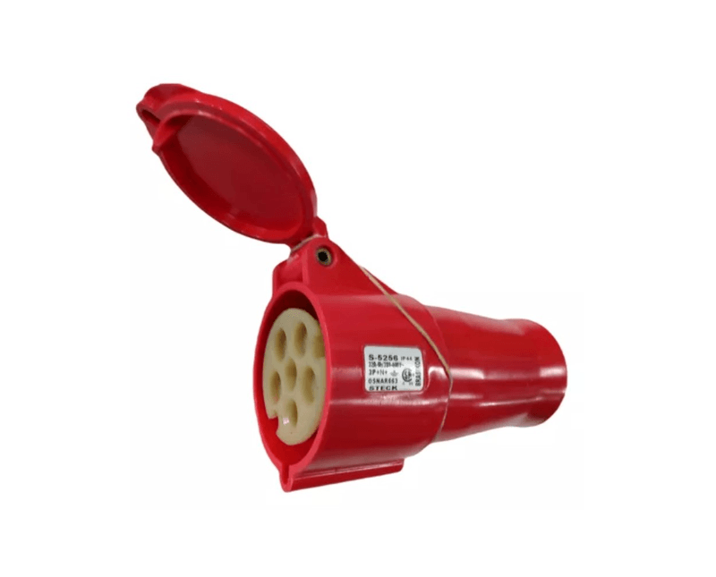 Com três polos e um neutro, além do pino terra, a Tomada Acoplável Steck S5256 é capaz de operar em corrente nominal de até 32 amperes e tensão entre 380-440V, unindo segurança e eficiência energética em um único produto. O grau de proteção da tomada é de IP44, que garante alta proteção contra a entrada de poeira e água, perfeito para ambientes industriais.