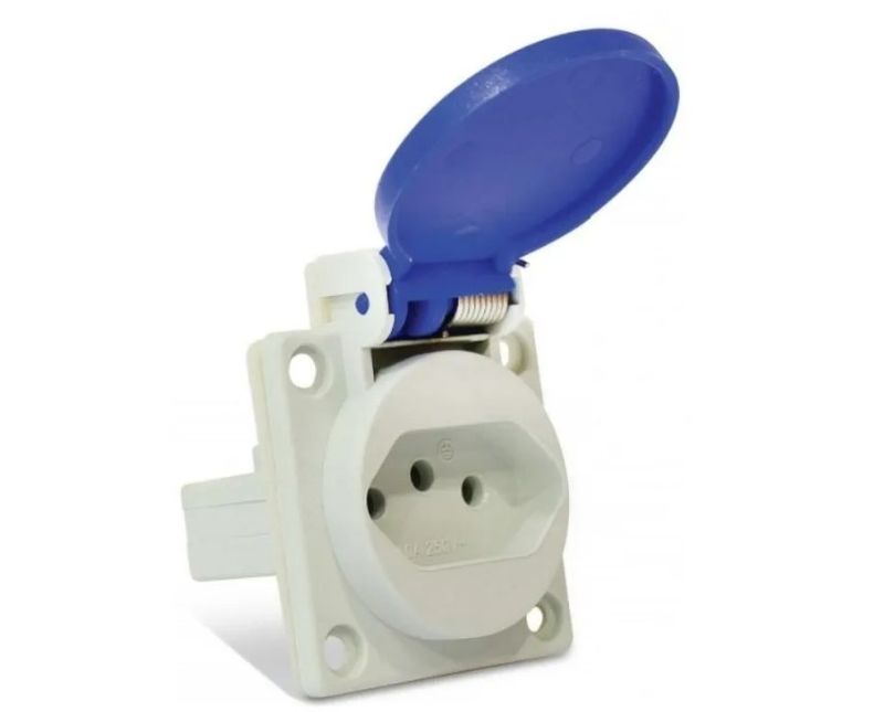 TOMADA INDUSTRIAL NAO METALICA | TIPO: EMBUTIR | MATERIAL: POLIAMIDA 6.6 | TIPO CONTATOS: FEMEA | NUMERO POLOS: 2 POLOS + TERRA | CORRENTE NOMINAL: 63A | TENSAO NOMINAL: 200/250V | FREQUENCIA: 50/60HZ | COR: AZUL | POSICAO PINO TERRA: 6H | BLOQUEIO MECANICO: C/BLOQUEIO | GRAU PROTECAO: IP-65 | PROTECAO: C/TAMPA | MODELO: QUASAR | MARCA: STECK | REFERENCIA: QUA3546B