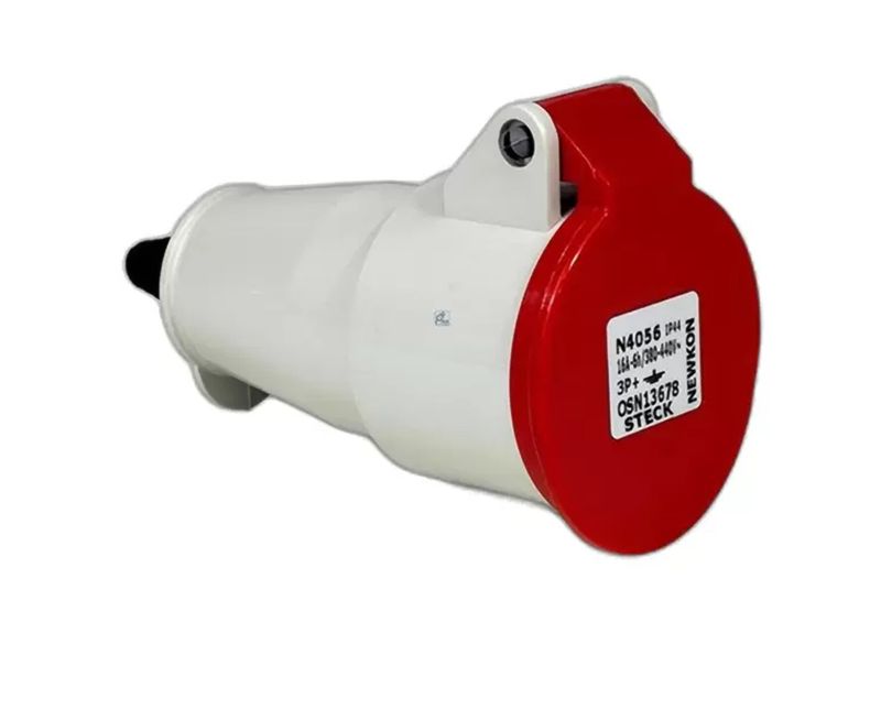 TOMADA INDUSTRIAL NAO METALICA | TIPO: EXTENSAO (MOVEL/ACOPLAMENTO) | MATERIAL: POLIAMIDA | TIPO CONTATOS: FEMEA | NUMERO POLOS: 3 POLOS + TERRA | CORRENTE NOMINAL: 16 A | TENSAO NOMINAL: 380/440 V | FREQUENCIA: 50/60 HZ | COR: VERMELHA | POSICAO PINO TERRA: 6H | BLOQUEIO MECANICO: SEM BLOQUEIO | GRAU PROTECAO: IP-44 | MARCA: STECK| REF: N4056